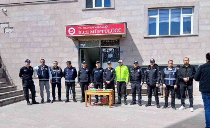 Merkez Camii’nde Kur’an-ı Kerim tilavetinin ardından mevlit ve ilahiler okunarak şehit polisler anıldı. Posof Müftüsü İsmail Bayram tarafından yapılan duanın ardından cuma namazı kılındı. Namaz çıkışında cemaate Polis ekiplerince tatlı ikram edildi.