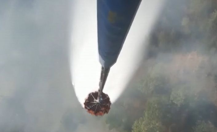 Muğla-Denizli il sınırındaki ormanlık alanda çıkan yangına havadan 11 helikopter ve 9 uçak müdahale ediyor.