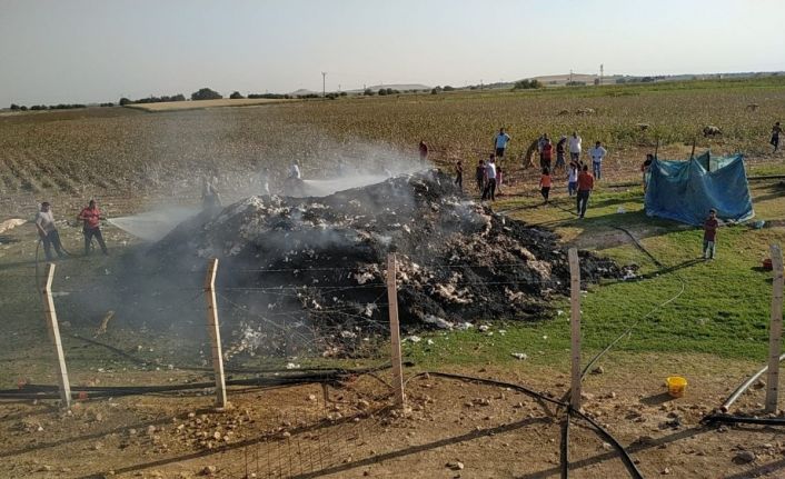 Şanlıurfa’nın Ceylanpınar ilçesinde istif halinde bulunan 12 ton pamuk çıkan yangında küle döndü.