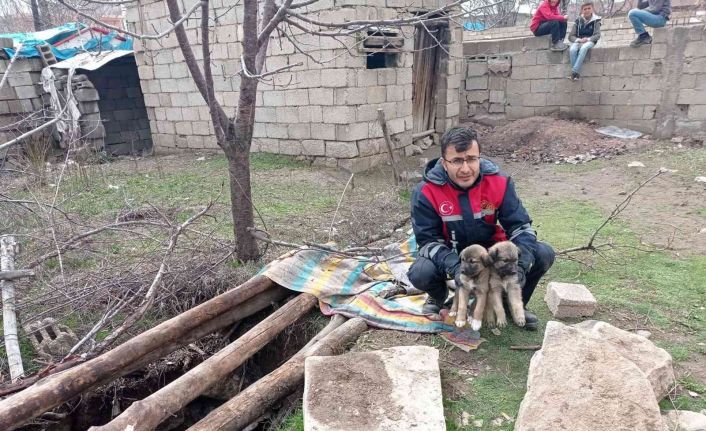 Van’ın İpekyolu ilçesinde 13 metre derinlikteki çukura düşen yavru köpekler, itfaiye ekipleri tarafından kuyuya inilerek kurtarıldı.