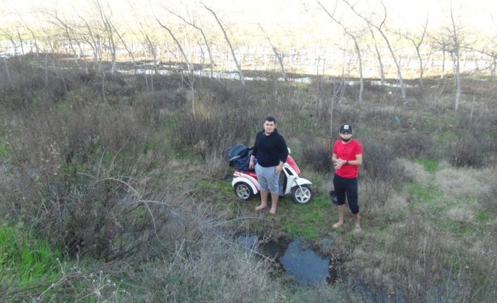 Yağmur suyu birikintisinin olduğu tarlaya yuvarlanan Ömer Avşar’ın yardımına yoldan geçmekte olan 2 kız koşarken, sağlık durumunun iyi olduğu bildirildi.