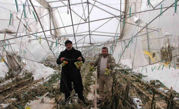 Adıyaman’da 15 dönüm kapalı alana sahip sera yoğun kar yağışına dayanamayarak çöktü. Serada ki tonlarca ürün çürüdü.