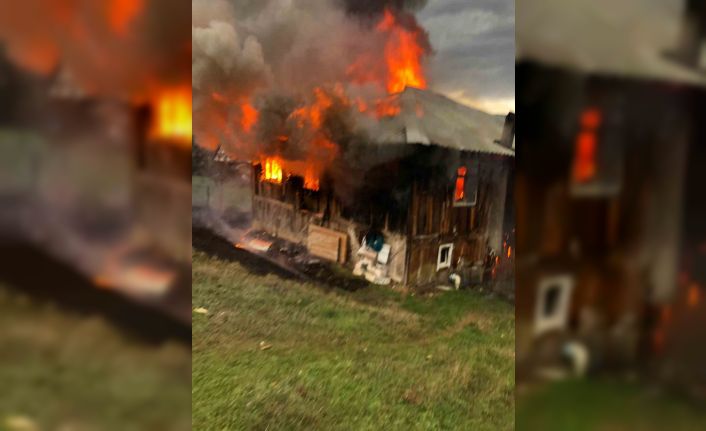 2 katlı ahşap ev alev alev yandı