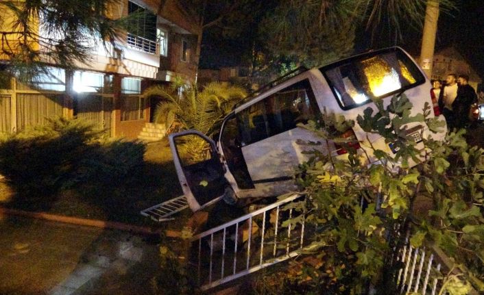 Zonguldak’ın Alaplı ilçesinde 2 otomobile çarpan minibüs bir apartmanın bahçesine uçtu. Kazaya karışan sürücü olay yerinden uzaklaştı.