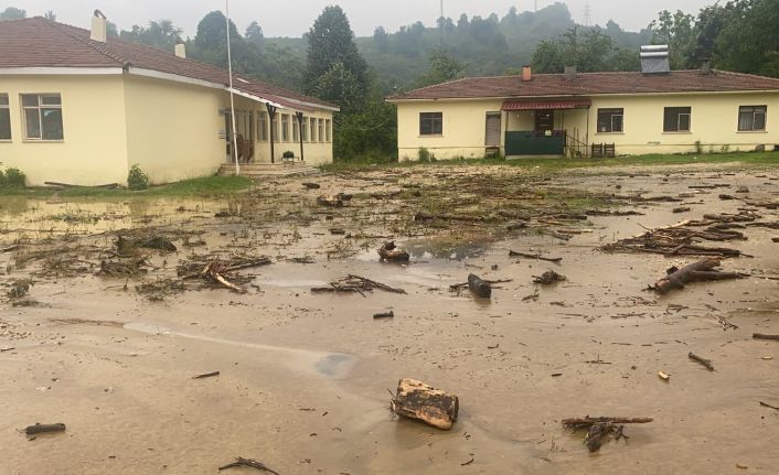 DÜZCE (İHA) – 2 yıl önce 4’ü çocuk 7 kişinin ölümü ile sonuçlanan sel felaketinin ardından Esmahanım köyünü tekrar sel vurdu. İstinat duvarları çöktü, kanalizasyon hattı sele kapıldı. Okul bahçesi ise selden kalanlarla doldu.