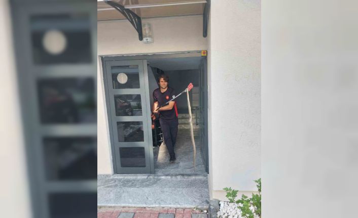Yeni Atatürk Stadyumu mevkiinde meydana gelen olayda, vatandaşlar apartmanın depo bölümünde yılan görmesi üzerine durumu itfaiye ekiplerine bildirdi. Olay yerine gelen itfaiye ekipleri, yılanı kısa sürede yakalayarak arazide doğal ortamına bıraktı. O anlar ise cep telefonu kamerasına yansıdı. Görüntülerde, duvar kenarında olan yılanın yakalandığı anlar yer alıyor.
