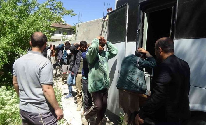Van’da polis ekiplerinin ’Göçmen Kaçakçılığı ve İnsan Ticareti’ yapan şahısların deşifresine ve düzensiz göçmenlerin yakalanmasına yönelik çalışmaları devam ediyor. Bu çerçevede yapılan çalışmalar sonucunda ilçeye bağlı Hacıbekir Mahallesi’nde tek katlı bir evde ve düzensiz göçmen olduğu tespit edildi. Bunun üzerine İl Emniyet Müdürlüğüne bağlı Göçmen Kaçakçılığıyla Mücadele ve Hudut Kapıları Şube Müdürlüğü ekipleri ile özel harekat polisinin düzenlediği operasyonda, 3 metrekarelik bölmede gizlenen 27 düzensiz göçmen yakalandı. Düzensiz göçmenler işlemlerinin yapılması için İl Göç İdaresi Müdürlüğüne götürülürken, ev sahibi şüpheli şahıs ise gözaltına alınarak emniyete götürüldü. Göçmen kaçakçılığı yaptıkları iddiasıyla 2 kişi gözaltına alınırken, polis helikopteri de operasyon sırasında bölgede uçuş gerçekleştirdi.