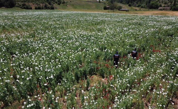 Manisa’nın Gördes ilçesinde Manisa İl Jandarma Komutanlığı Kaçakçılık Şube Müdürlüğü ve İstihbarat Şube Müdürlükleri ile Gördes ilçe Jandarma Komutanlığı tarafından yürütülen çalışmalar sonucunda Beşeylül Mahallesi’nde yasadışı haşhaş ekimi yapıldığı istihbaratı üzerine harekete geçildi. Yapılan araştırmalarda Ş.K. isimli şahsa ait olduğu öğrenilen toplamda 31 bin 625 metrekarelik iki tarlada 632 bin 500 kök haşhaş bitkisi ekildiği tespit edildi. Ekimi yapılan haşhaşlara el konulurken Ş.K. ise gözaltına alındı. Jandarma karakoluna götürülen Ş.K.’nın işlemleri devam ediyor.31 dönüm araziye 632 bin 500 kök haşhaş ekmişler