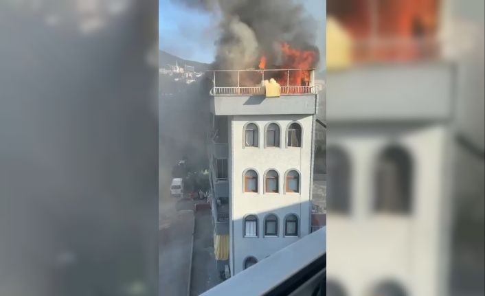Bursa’da 5 katlı binanın çatısı alev alev yandı. O anlar vatandaşların kameralarına yansıdı.