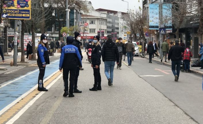 İçişleri Bakanlığı’nın genelgesiyle her hafta uygulanan 56 saatlik sokağa çıkma kısıtlaması öncesi Düzce’de cadde ve sokaklarda yaşanan yoğunluk polis ekiplerini harekete geçirdi. Korona virüs ile mücadele tedbirleri çerçevesinde Düzce İl Emniyet Müdürlüğü ekipleri, Düzce’nin yaya yoğunluğu bulunan cadde ve sokaklarında denetim ve uygulama yaptı. İstanbul Caddesi, Gaziantep Caddesi ve Spor Sokak’ta yaya olarak denetim yapan ekipler, ara sokaklara da girerek özellikle çay ocaklarının bulunduğu bölgelerde uygulama yaptılar.