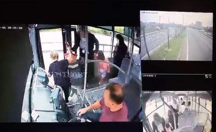 Görüntülerde çarpışmanın etkisiyle büyük korku yaşayan yolcuların çığlıklar içerisinde araçtan indikleri yer alıyor.