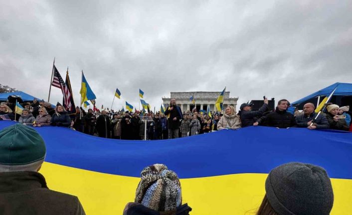 Rusya-Ukrayna Savaşı’nda 1 yıl geride kaldı. ABD’de yaşayan Ukraynalılar başkent Washington DC’de Rusya karşıtı protesto düzenledi. Başkentteki Lincoln Anıtı önünde bir araya gelen göstericiler, savaşta hayatını kaybedenler için bir dakikalık saygı duruşunda bulundu, Ukrayna ve ABD milli marşlarını da çalarak eylemlerine başladı.