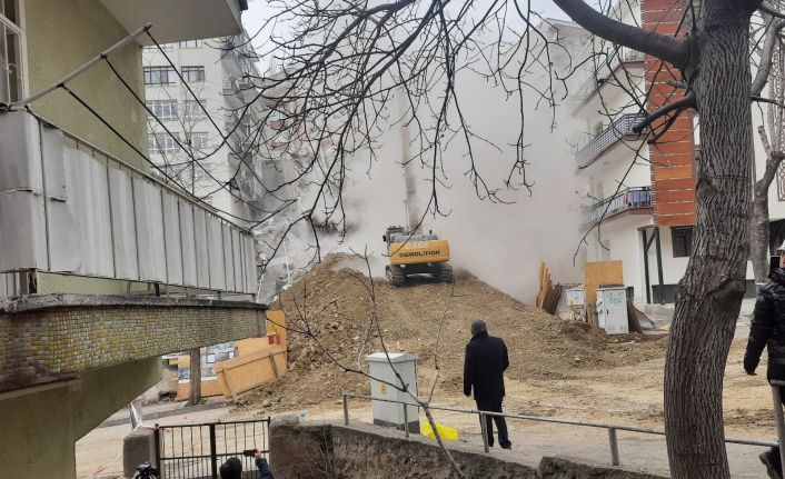 Ankara’nın Çankaya ilçesinde çökme riski bulunduğu için boşaltılarak kontrollü yıkımına başlanan Açelya Apartmanı’nın yıkımında sona gelindi.