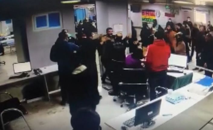 Sağlıkçılara saldırmaya çalışan hasta yakınlarına müdahale eden güvenlik görevlilerinin saldırganlar tarafından darp edilmesi görüntülerde yer aldı. Görüntülerde hasta yakınlarının güvenlik görevlilerine yumruklarla saldırdığı görülürken Acil Servis’te yaşanan kavganın koridora taşması kamera yansıdı.