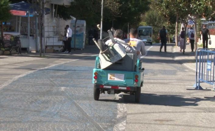 Celal Uzun, ”Beyaz eşya hizmeti vermekteyim. Daha önce at arabası ile bu hizmeti sağlıyorduk. Yaklaşık 5-6 hafta atları kaldırdılar. Şuan ben 4 araç ile bu hizmeti vermekteyim. Zaman zaman bunların arızalarıdır, şarjların yetmemesi gibi sorunlar oluyor. Tabii bunlar yeterli değil, şuan da kendi çapımızda bu yükü aldık. Bunları da emniyete tabii tutmak için dilekçemizi yazdık. Yazın dört tane yetmiyor. Kışın ise 2 tane ile ancak bu hizmeti sağlamaktayım. Normal bir tane motorlu ya da elektrikli tescilli bir araç verse bizim yükü, işimizi kaldırabilecek şekilde sunsa bize bence bu sorun çözülür” diye konuştu.