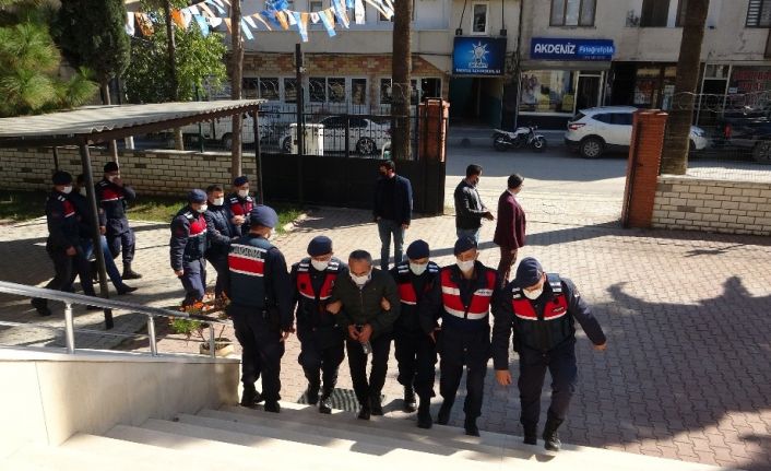 Yapılan operasyonda Karataş’ın Bebeli Mahallesi muhtarı H.T, Milli Emlak Müdürlüğü memurları Y.Ç. ve M.T. ile A.K, H.K. ve S.Ç. adlı kişiler göz altına alındı. A.K, H.K. ve S.Ç, ilk ifadelerinin alınmasının ardından serbest kalırken, muhtar H.T. ve Milli Emlak Müdürlüğünde görevli memurlar Y.Ç. ve M.T. jandarmadaki işlemlerinin ardından Karataş Adliyesine sevk edildi.