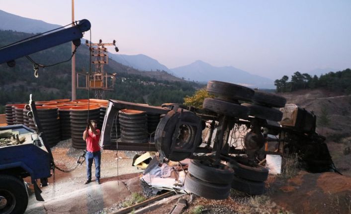 Adana’nın Pozantı ilçesinde kaçış rampası sonundaki beton bariyere çarpan kamyondaki 4 kişi sıkışarak araç içerisinde öldü.