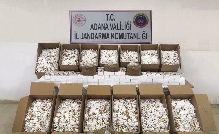 Adana’da piyasa değeri 50 bin lira olan makaron, sigara kağıdı ve içi tütün ile doldurulmuş sigara ile tütün ele geçirildi.