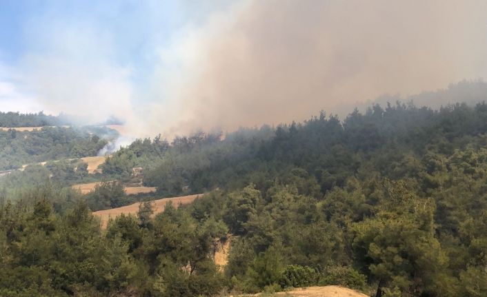 Kızılçam ormanında çıkan yangın, havadan ve karadan müdahale edilerek, kontrol altına alınmaya çalışılıyor.