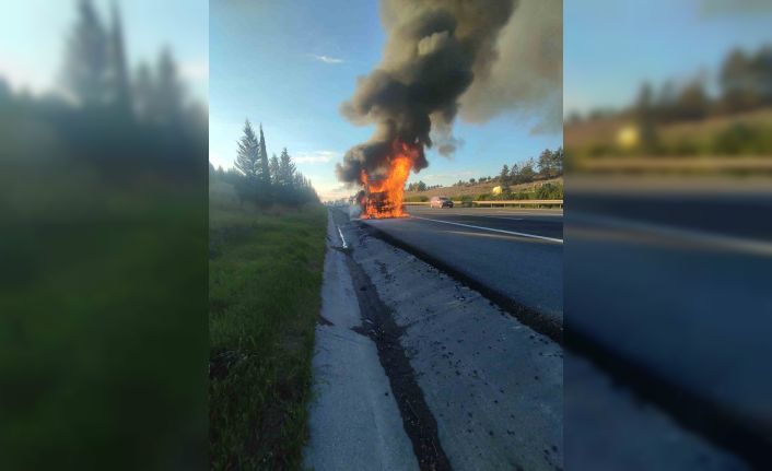 Adana’da otoyolda ilerleyen tır alev topuna dönüştü. Yangından yaralanan olmazken, itfaiye ekipleri yanan aracı söndürdü.