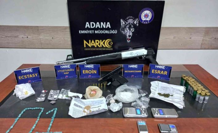 Adana Emniyet Müdürlüğü Narkotik Suçlarla Mücadele Şube Müdürlüğü ekipleri, Yüreğir ve Seyhan ilçesindeki iki evde uyuşturucu madde satışı yapıldığı bilgisine ulaştı. Ekipler, şüpheli Ö.K.’nin Havutlu Mahallesi, V.Ş.’nin ise Namık Kemal Mahallesi’ndeki evlerine operasyon düzenledi. Ö.K. ile V.Ş. gözaltına alınırken, adreslerde yapılan aramalarda 128 metamfetamin, 45 gram eroin, 97 uyuşturucu hap, 5 gram esrar, 4 hassas terazi, ruhsatsız tabanca ve pompalı tüfek ele geçirildi.
