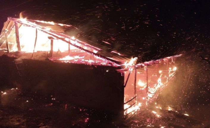 Adana’nın Feke ilçesinde bir ev ve ahır, çıkan yangında küle döndü.