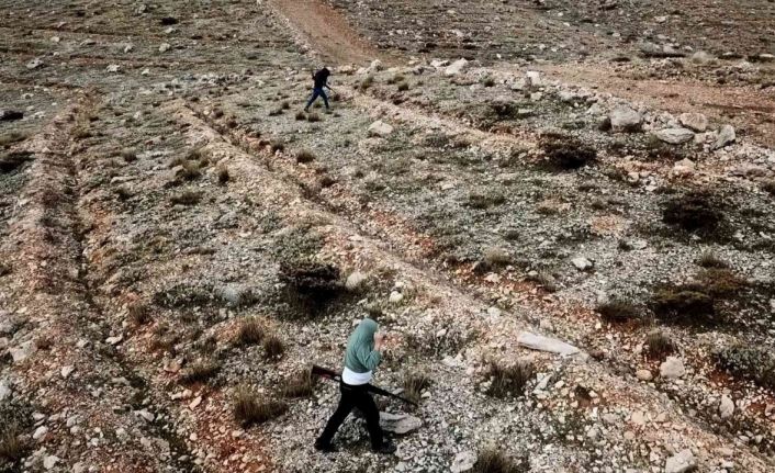 Adıyaman’da Doğa Koruma ve Milli Parklar Şube Müdürlüğü ekiplerinin uçurduğu dron kamerasına yakalanan kaçak avcılar, yüzlerini kapatarak kaçmaya çalıştı.