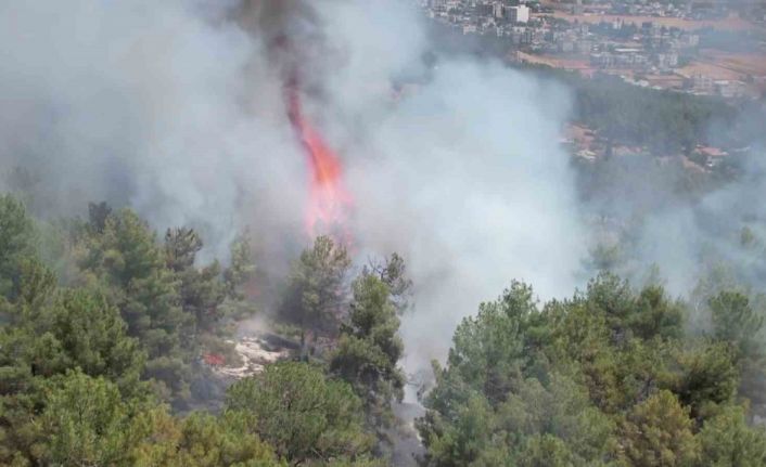 Adıyaman Karadağ ormanlık alanında devam eden orman yangını havadan görüntülendi.