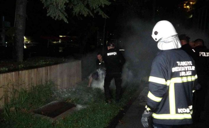 Bu sırada Şenol K.’nın oturduğu çimleri sulamak için kullanılan fıskiyeler devreye girdi. Fıskiyelerden gelen suyla ıslanan Şenol K., ekiplerin yangın söndürme tüplerini sıkarak müdahale etmesinin ardından ambulansa götürüldü. Ekipler bidondaki benzini ve çakmağı da alarak bölgeden ayrıldı.