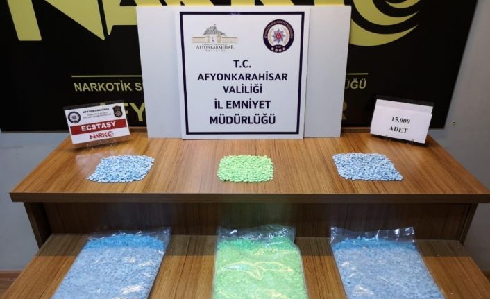 Afyonkarahisar’da polisin asayiş uygulaması sırasında şüphe üzerine durdurulan bir araçta 15 bin adet ecstasy hap ele geçirildi.