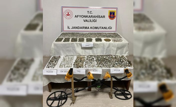 Afyonkarahisar İl Jandarma Komutanlığı ekipleri tarafından; Bolvadin, Emirdağ ve Sinanpaşa ilçelerinde görevli önleyici kolluk devriyeleri tarafından, 12 şahıs kaçak kazı yaptıkları sırada suçüstü yakalandı. Jandarma ekiplerince kazı bölgelerinde ve şahısların evlerinde yapılan aramalarda; 3 bin 120 adet para, 275 adet figür, 113 adet yüzük, 53 adet küpe, 74 adet ok ucu, 104 adet taş, 1 adet hassas terazi ve muhtelif malzemeler ele geçirildi. Yakalanan şahıslarla ilgili olarak adli işlemlere başlanıldığı bildirildi.