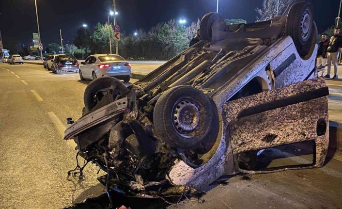 Kartal’da direksiyon hakimiyetini kaybeden sürücü ağaca çarpıp takla attı. Takla atan aracın sürücüsü olay yerinden kaçtı.