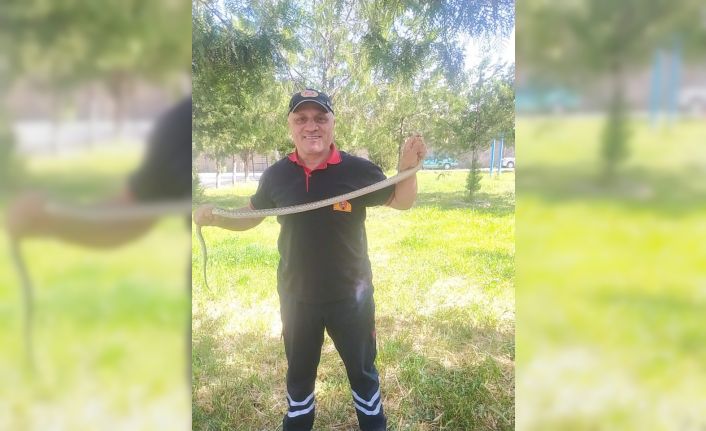Edinilen bilgiye göre, Kardelen Sitesi parkında bulunan bir ağaca çıkan yılanı gören vatandaşlar durumu itfaiye ekiplerine bildirdi. Vatandaşların ihbarı üzerine olay yerine gelen itfaiye ekipleri, özel bir aparatla yılanı yakalamak için çalışma yaptı. Ekipler, 10 dakika çalışmanın ardından yılanı yakalamayı başardı. Site sakinleri yılanı yakalayan itfaiye ekibine teşekkür etti.