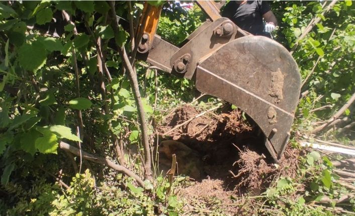 Kocaeli’nin Gölcük ilçesinde ormanlık alanda toprak çökmesi sonucu ağacın dibinde sıkışan köpek, belediye kepçesi ile kurtarıldı.