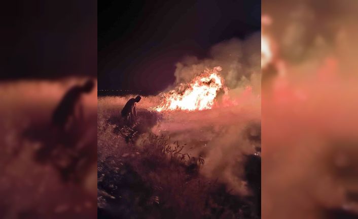 Ağrı’da gece saatlerinde meydana gelen yangında bir tarla küle döndü.