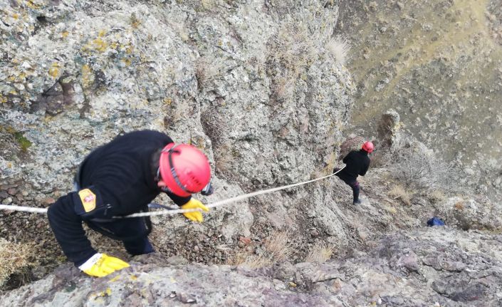 Ağrı’nın Doğubayazıt ilçesine bağlı Akbudak köyünde köpeğini kurtarmak isterken kayalıklarda mahsur kalan şahsı itfaiye ekipleri kurtardı.