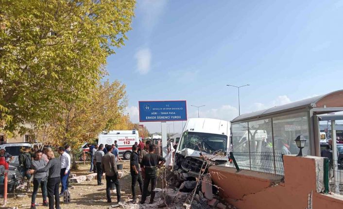 Ağrı’da, durakta bekleyen üniversite öğrencisine ve ardından yurt bahçesinin duvarına çarpan okul servisi, 7 kişinin yaralanmasına neden oldu.