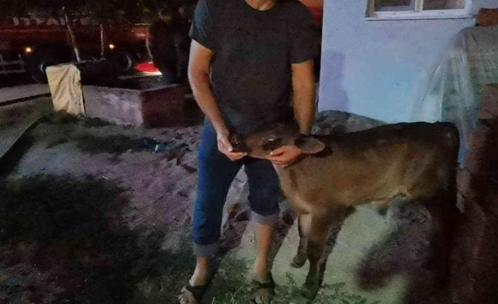Yangında annesi telef olan buzağı, vatandaşların parmaklarını emdi. Buzağıyı görenler, duygulu anlar yaşadı. Yangın sonucu Gültekin ailesi, işsiz kaldı. Yetkililerin aileye yardım etmesi bekleniyor.