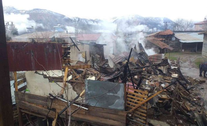 Sivas’ın Koyulhisar ilçesinde ahşap bir evde çıkan yangının başka bir eve sıçraması sonucu yangın büyürken, alevler adeta gecenin karanlığını aydınlattı.