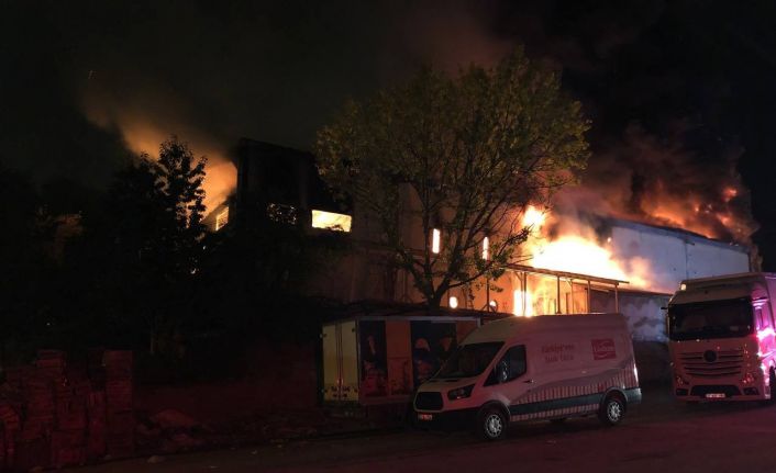 Fabrikadaki yangın itfaiye ekiplerince söndürülmeye çalışırken ekipler, alevlerin hemen bitişiğinde bulunan diğer depolara sıçramaması için yoğun çaba sarf ediyor.