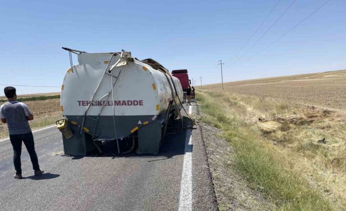Konya’nın Kulu ilçesinde seyir halindeki akaryakıt taşıyan tankerin tankı, yerinden kopması sonucu şarampole devrildi.
