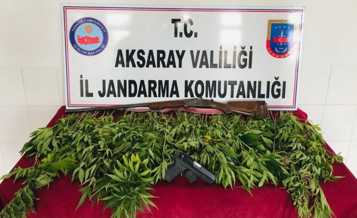 Aksaray’da yaylada bulunan müstakil bir eve operasyon düzenleyen jandarma ekipleri evin bahçesinde 120 kök ekili kenevir bitkisi, bir miktar kenevir tohumu, bir adet kurusıkı tabanca ve 1 adet tüfek ele geçirdi.
