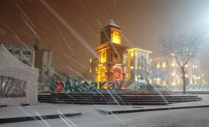 Aksaray’da gün boyu belirli aralıklarla hafif şekilde yağar kar, akşam saatlerinde etkisini artırdı.