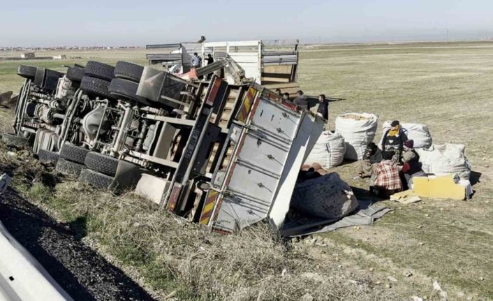 Kaza, Aksaray - Konya kara yolunun 19. kilometresinde meydana geldi. Edinilen bilgiye göre, Aksaray’dan Konya istikametine seyreden 57 yaşındaki Mehmet B. idaresindeki 15 ABF 547 plakalı kamyon, sürücünün direksiyon hakimiyetini kaybetmesi sonucu bariyere çarptıktan sonra şarampole devrildi. Kazada sürücü yaralanırken diğer araç sürücüleri durumu 112 Acil Çağrı Merkezine bildirdi. İhbar üzerine olay yerine polis ve sağlık ekibi sevk edildi. Kısa sürede olay yerine gelen sağlık ekipleri yaralı sürücüye ilk müdahaleyi ambulans içinde yaptı. Polis ekipleri yolda güvenlik önlemi alırken, yaralı sürücünün sağlık durumunun iyi olduğu öğrenildi. Dökülen patatesler ise sürücünün yakınları tarafından toplanarak başka bir kamyona yüklendi.