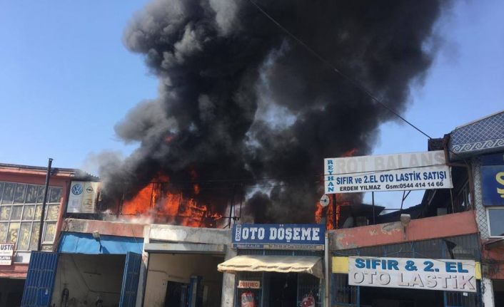 Yangın, Yeni Sanayi Mahallesi Sanayi Sitesi Mimar Sinan Sokak’ta meydana geldi. Edinilen bilgiye göre, Kamil U.’ya (38) ait kaporta tamirhanesinin çatısında bulunan konteynerde henüz belirlenemeyen bir nedenle yangın çıktı. Kaporta tamirhanesi bitişiğinde bulunan Fatih Ş.’ye (45) ait lokantanın çatısının birleştiği alanda alevlerin yükseldiğini fark eden esnaflar durumu 112 Acil Çağrı Merkezine bildirdi. İhbar üzerine olay yerine itfaiye, ambulans ve polis ekipleri sevk edildi. İtfaiye ekiplerinin müdahalesi esnasında yangın Vedat K.’ye (46) ait yapı malzemeleri deposuna sıçradı. İtfaiye ekipleri çok sayıda araç, donanım ve itfaiye eri ile yanan tamirhanesi ve depoya müdahale ederken, esnaflar da itfaiye ekiplerine yardım ederek tamirhane ve depoda bulunan yanıcı malzemelerin tahliyesini yaptı. Tamirhane ve depoda bulunan malzemeleri tahliye ederken dumandan etkilenen 14 kişiye sağlık görevlileri tarafından hazır bekleyen ambulanslarda oksijen tüpleri ile müdahale edildi. Yaklaşık 1 saat süren söndürme çalışmalarını tamamlayan itfaiye ekipleri malzemelerin tahliye edildiği tamirhane ve depoda soğutma çalışmalarına başladı. Köpük bazlı söndürme ve soğutma çalışması yapılan tamirhane ve depo kullanılmaz hale gelirken, polis ekipleri yangının çıkış nedeniyle ilgili niceleme başlattı. Yangında dumandan etkilenen ve hastaneye kaldırılan 14 kişinin durumunun iyi olduğu öğrenildi.