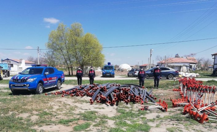 Aksaray’da bir çiftçinin tarlasından sulama sistemlerine ait boru ve vanaları çalan 2 hırsızlık şüphelisi, jandarma tarafından yakalandı.