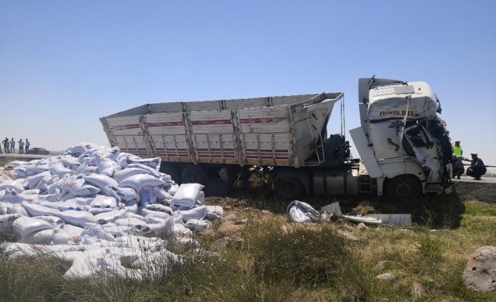 Aksaray’da hayvan yemi yüklü tır, sürücüsünün direksiyon hakimiyetini kaybetmesi sonucu şarampole devrildi. Kazada sürücü yaralandı.