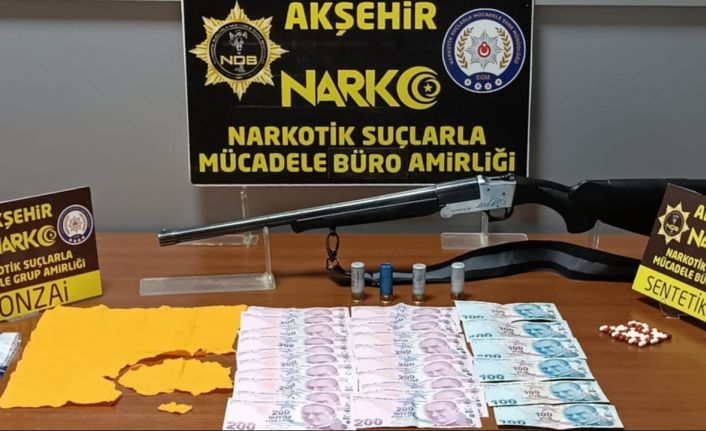 İlçe Emniyet Müdürlüğü Narkotik Suçlarla Mücadele Büro Amirliği ekiplerince ilçe merkezinde düzenlenen uyuşturucu operasyonunda M.B., B.V., A.Y., Y.A., M.B. ve M.T. gözaltına alındı. Şüphelilerin üst ve ev aramalarında piyasa değeri yaklaşık 1 milyon 500 TL olan 4 bin 134 kullanımlık kağıt bonzai, uyuşturucu hap ile av tüfeği ele geçirildi. Gözaltına alınan 6 şüpheliden işlemleri tamamlanan M.B. ile A.Y. Akşehir Cumhuriyet Başsavcılığına sevk edildi. Savcılık sorgusu tamamlanan şüphelilerden A.Y. adli kontrolle serbest kalırken, M.B. çıkarıldığı mahkemece tutuklanarak Akşehir Cezaevine gönderildi.