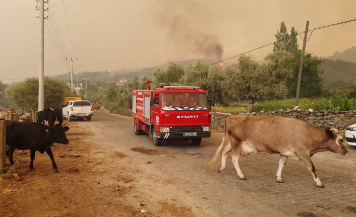 Aydın’ın Çine ilçesine bağlı Akçaova’nın yakınındaki ormanlık alanda başlayan yangın köydeki hayvancılık işletmelerine sıçradı. AKUT ve vatandaşlar çiftlikleri boşaltıyor.