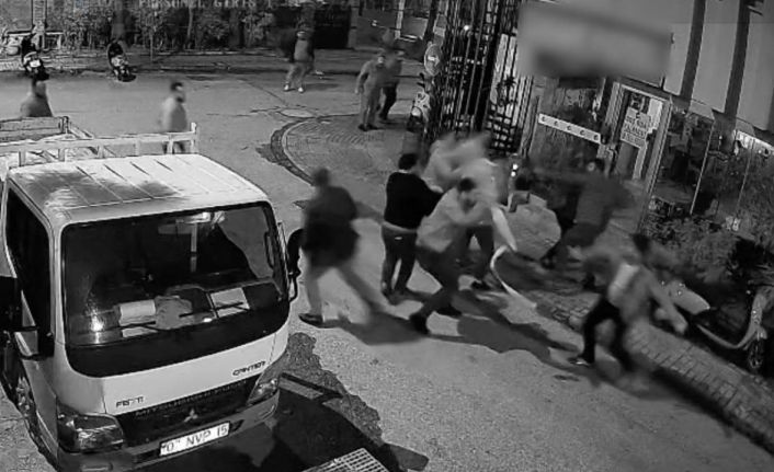 Alanya’da kanlı biten alacak verecek kavgasında çok sayıda kişinin zincir, sopa ve bıçaklarla birbirlerine girdiği anlar bir işletmenin güvenlik kameraları tarafından anbean görüntülendi.